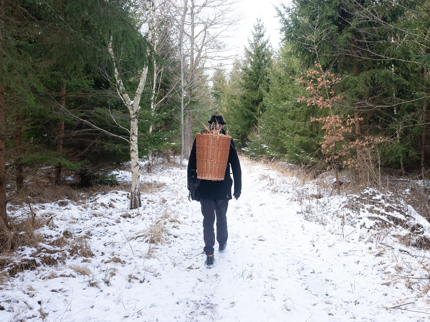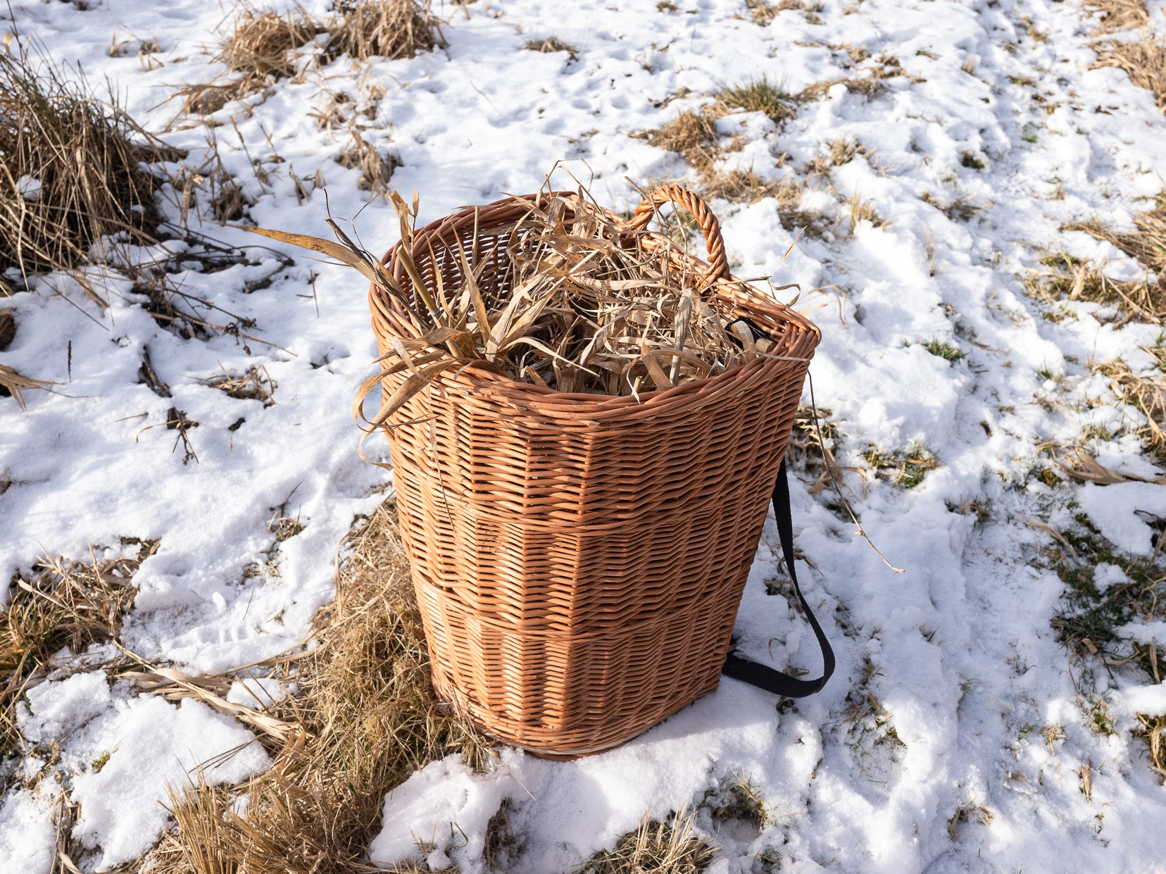 Übrigens gehen wir diesmal nicht mit einem Müllsack Material sammeln, sondern stilecht mit einer großen Korb-Bütte.